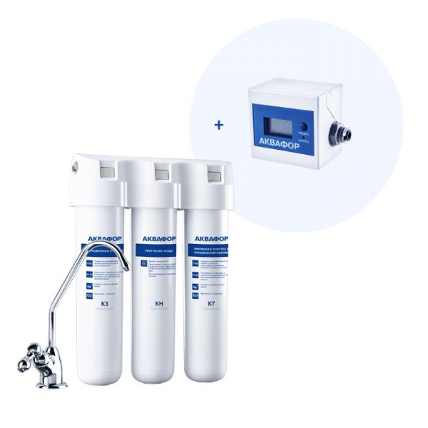 Умягчающий модуль KH эффективен для воды умеренной жесткости. Для показателей выше 5 мг-экв/л рекомендуем водоочиститель обратноосмотического типа Аквафор Кристалл ОСМО или автоматы питьевой воды Аквафор DWM.