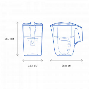 Объем воронки, л1,9Применениедля холодной водыОбъем кувшина, л3,9Помещается в дверцу холодильниканетКрышкаглухаяСчётчик замены модулябез счётчикаРесурс модуля, л350