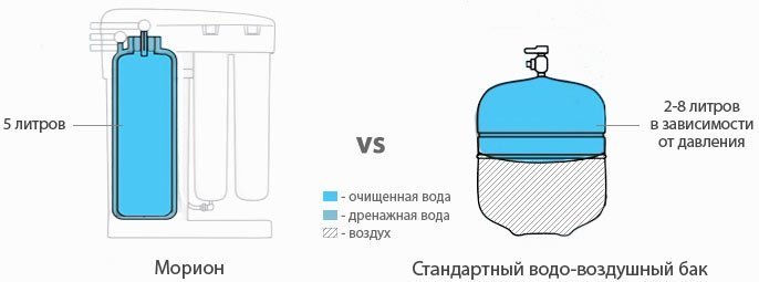 Благодаря эффективности DWM 101 Мориона Вы расходуете до 2 раз меньше воды. В традиционных осмотических фильтрах для получения одного литра чистой воды тратится до 16 литров воды, которая сливается в дренаж. В Аквафор DWM 101 это соотношение удерживается на уровне 1:4.